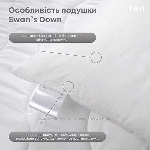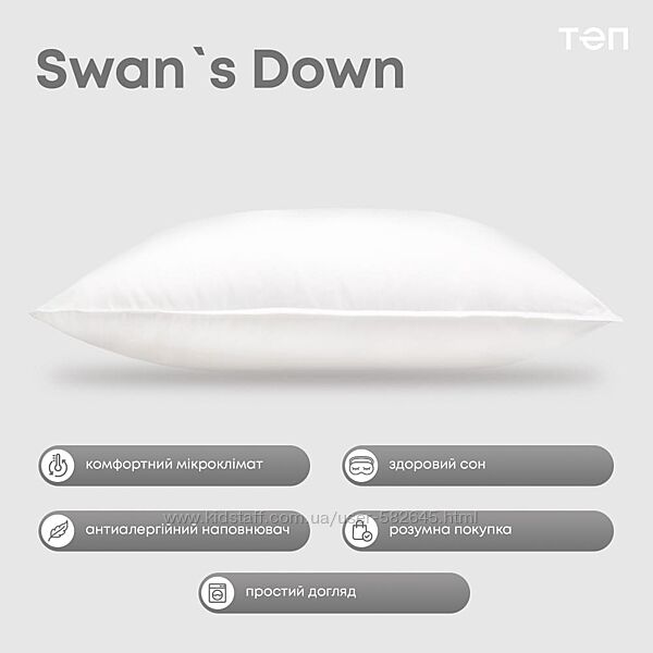 Подробное описание: Подушка ТЕП Лебяжий пух супер якості із бавовняним ТІК чохлом