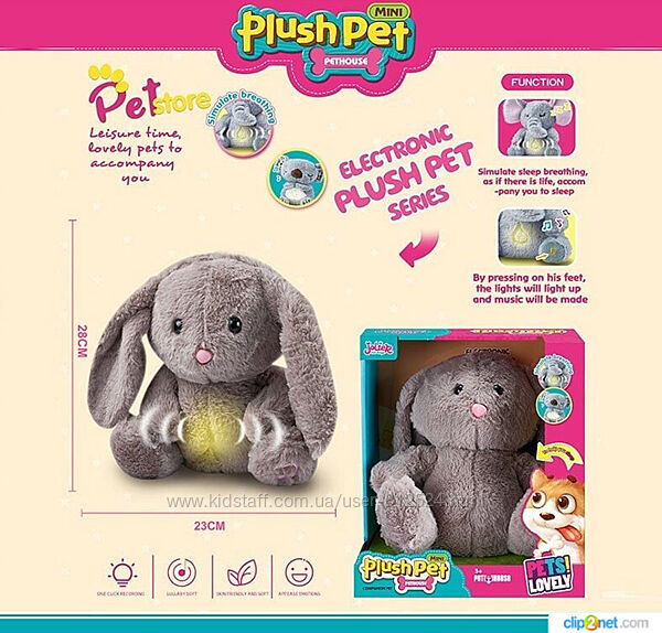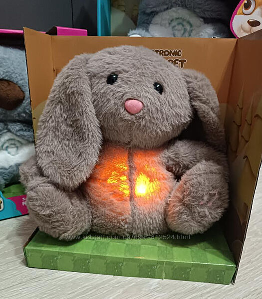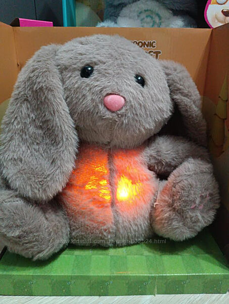При натисканні на лапку тваринка почне підсвічуватися, дихати і заграє приємну мелодію, яка допоможе дитині розслабитися та заснути.