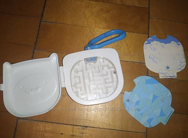 Игрушки лабиринт Белую можно цеплять к рюкзаку, штаны, верёвку. Передвигать шарик с помощьюнаклонения, можно менять карты на 4 разных локации Жёлтая в виде пирамиды. Передвигать шайбу с помощью собачки, там у неё магнит.