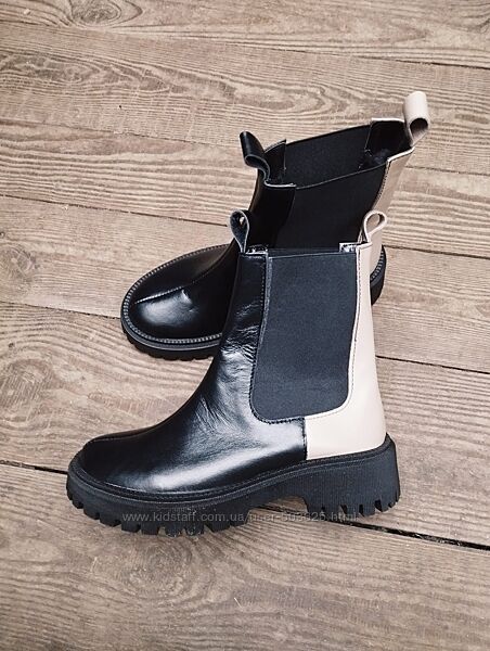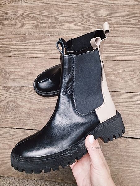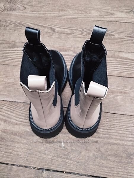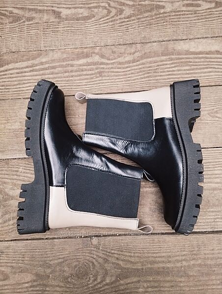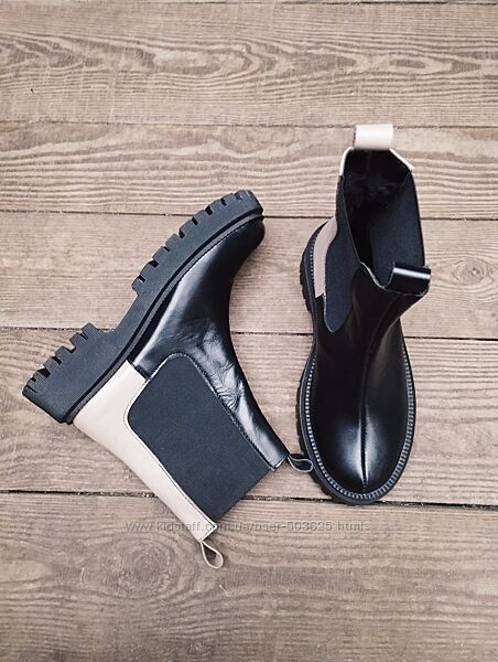 Подробное описание: Зимові шкіряні чорні, бежеві черевики челсі, ботінки, 36-40р