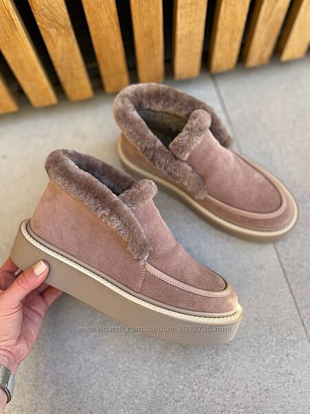 Подробное описание: Лофери жіночі натуральна замша зимові чорні бежеві Артикул 9944