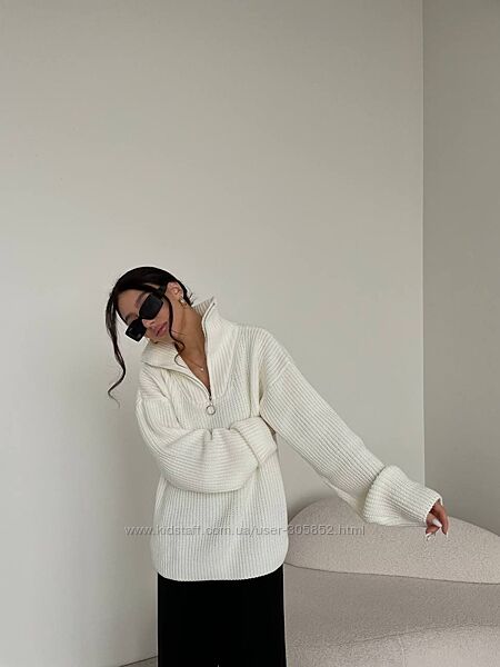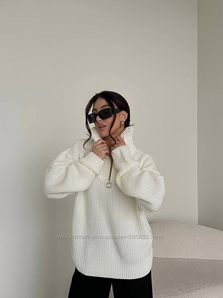 Вільний ZIP-светр прямого крою, який відмінно пасує до джинс, брюк, спідниць і поверх комбінацій. Ніжна пряжа, яка абсолютно не колеться🧡