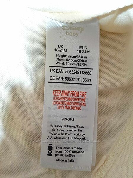 М*який та приємний на дотик, 100% котон. Злегка тягнеться.На 18-24 місяці: довжина 36 см, груди 30 см, талія 29 см, стегна 32 см, рукав 32 см.