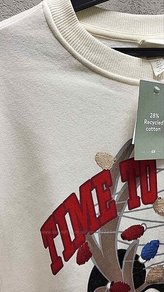 Толстовка свитшот с принтом H&M - XS, S, M с начесом