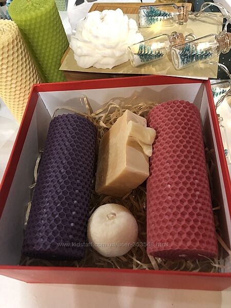 Подробное описание: Свічки з натурального бджолиного та соєвого воску. Подарункові бокси