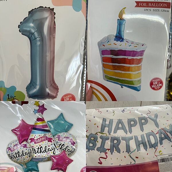 Фото 1 набор Шаров happy birthday : надпись из Шаров, 6 Шаров серебро 25 см, 4 шара с конфетти 30 см, звезда 2шт серебро. Цена 250 грн.Гирлянда растяжка из фольгированных шаров с надписью Happy birthday. В наборе 13 Шариков с буквами, лента и трубочка для надувания шаров. В наличии цвета голубой, розовый, золотой и разноцветный. Цена 100 грн.