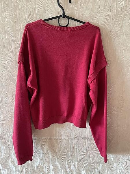 Трикотажный свитер (джемпер) для девочек с круглым вырезом и длинными рукавами LC Waikiki. Рост 146-152 см.Цвет фуксия. Модель оверсайз.