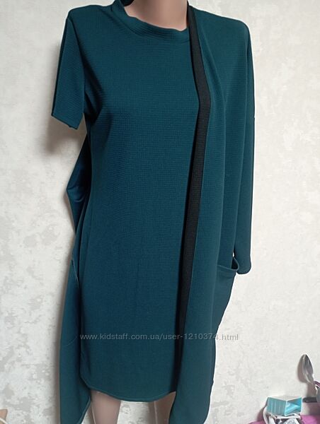 урочистий, стильний, гарний костюм двійка (кардиган з тунікою).Підійде для будь-якого заходуКолір - смарагдовий.