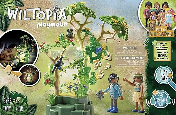 -Wiltopia – это первая линейка продуктов PLAYMOBIL, которая в среднем более чем на 80% состоит из экологически чистого материала. Сортированные пластиковые отходы обретают новую жизнь и служат источником материала для этого необычного игрового мира. Это экономит ресурсы и, прежде всего, окружающую среду. Разумеется, вся продукция Wiltopia соответствует обычным высоким стандартам безопасности, а также проверенному качеству и долговечности PLAYMOBIL.