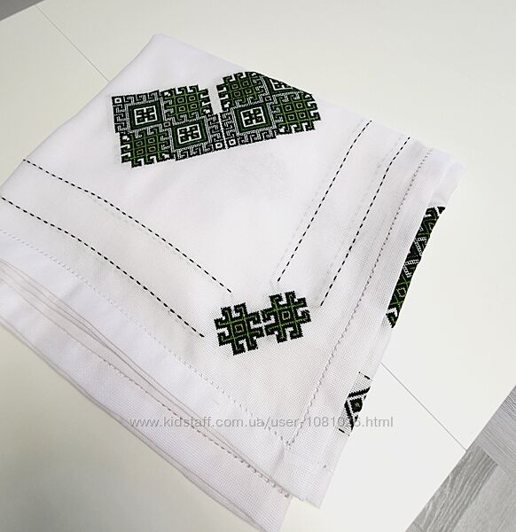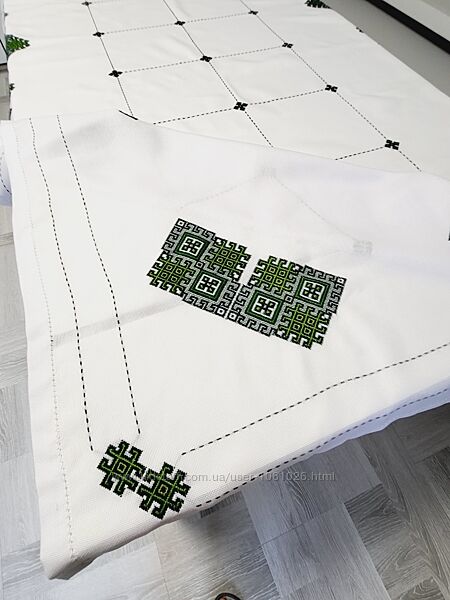 Подробное описание: Вишита скатертина ручної роботи Смарагдова на панамі розміром 14002950