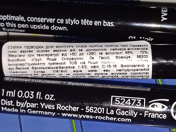 Подробное описание: Подводка фломастер для контура глаз черная 1мл ив роше, Франция, оригинал