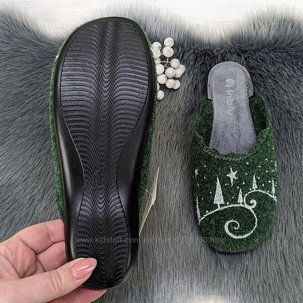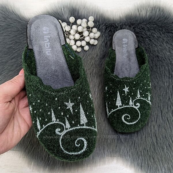 Подробное описание: Тапочки домашние женские Inblu зеленые фетровые на тонкой подошве 4322