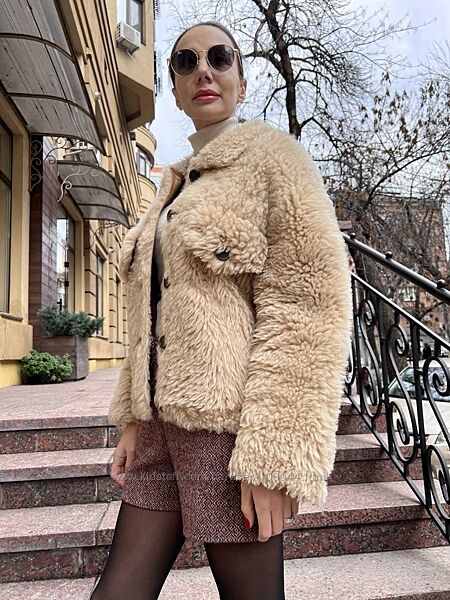 Подробное описание: Стильная натуральная дубленка, меховая куртка, овчина, цвет-бежевый, L.