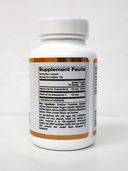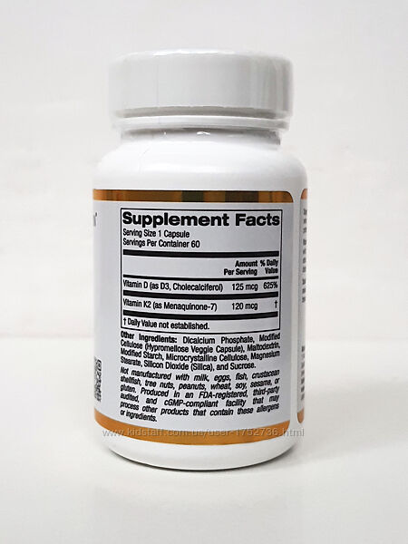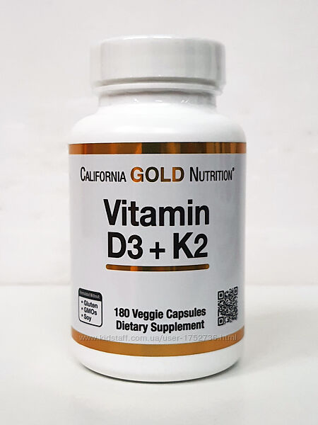 Подробное описание: Вітамин D3 K2 California Gold Nutrition, 60/180 капсул