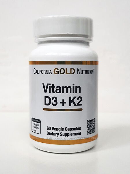 Вітамін D3 + K2 California Gold Nutrition (США).60 капсул - 340 грн.
