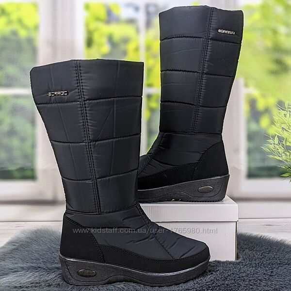 Сапоги дутики женские зимние высокие черные на танкетке Bromen 4336