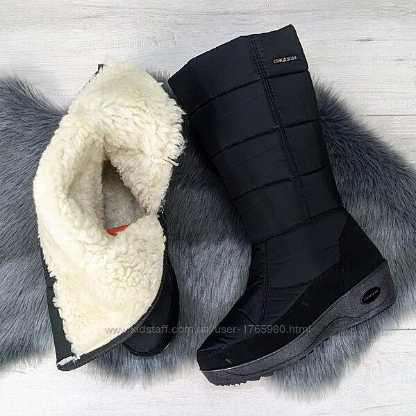 Высота подошвы от 2,5 см до 4.5 см. Высота голенища 30-33 см. Ширина голенища 37,5-42,5 см (в зависимости от размера)Красивая, аккуратная моделька, средней высоты на невысокой танкетке.Голенище сделано их обувной плащевки, низ- плотный эко-нубук.Застегиваются на молнию сбоку.Внутри искусственный мехПодойдут на ногу средней полноты и шире средней.