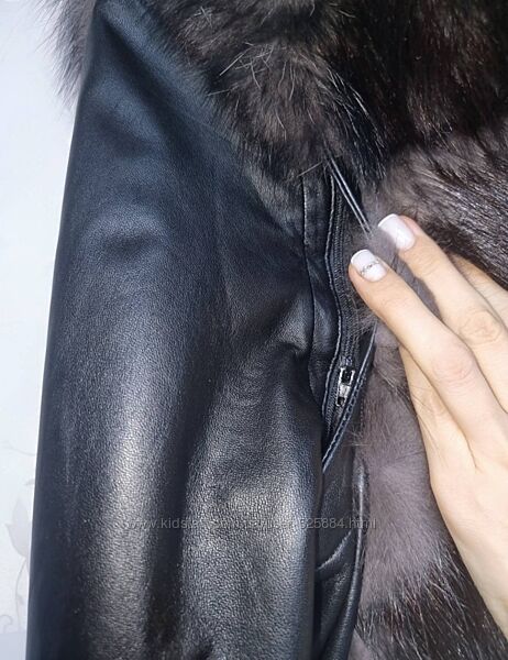 Подробное описание: Жилетка шуба трансформер зі шкіряними рукавами на розмір M