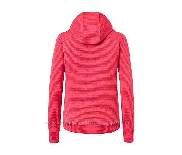 Опис виробника: Ідеальна річ для піших прогулянок чи їзди на велосипеді : кофта з капюшоном, з дихаючою системою DryActive Plus є повітропроникною, добре відводить вологу і швидко сохне. Кофта має дві косі бічні кишені та передню блискавку із захистом для підборіддя. Капюшон оснащений шнурком. Зовнішня куртка виконана зі структурованого матеріалу, що надає їй модного вигляду. Матеріал: 100% поліестер