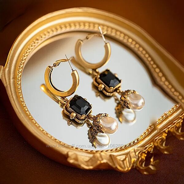 Дуже гарні сережки у вінтажному стилі. Додадуть своїй власниці надзвичайного шику і привернуть додаткову увагу.Метал - гіпоалергенний цинковий сплав.