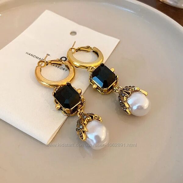 Подробное описание: Вінтажні вечірні сережки з перлами та кристалами