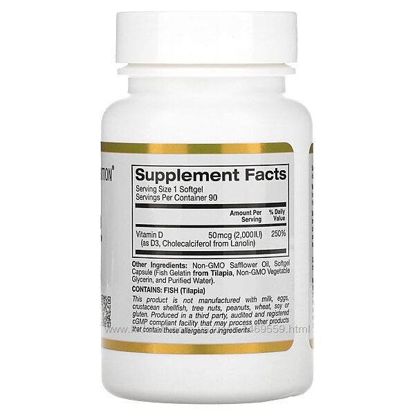 Подробное описание: California Gold Nutrition вітамін D3 50 мг 2000 МО 90 капсул д3 США імуніте