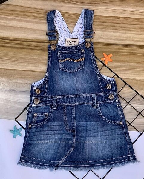 2) Рост 104-110см 4-5лет джинсовый сарафан на бретельках юбка клеш джинсовий tu