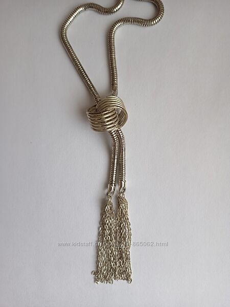 Фото 5-7. Удлиненное колье с переплетенными кольцами и каскадом нитей. Смотрится эффектно.
