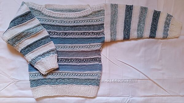 Продам гарну, тепленьку, м´якеньку дитячу кофтинку, светрик на Вашого малюка - хлопчика чи дівчинки (унісекс) .Колір - біло-блакитно-сірувата (меланж) смужка.