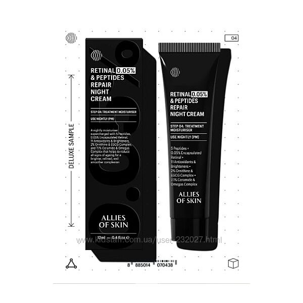 Подробное описание: Нічний крем Allies Of Skin Retinal 0.05 & Peptides Repair Night Cream