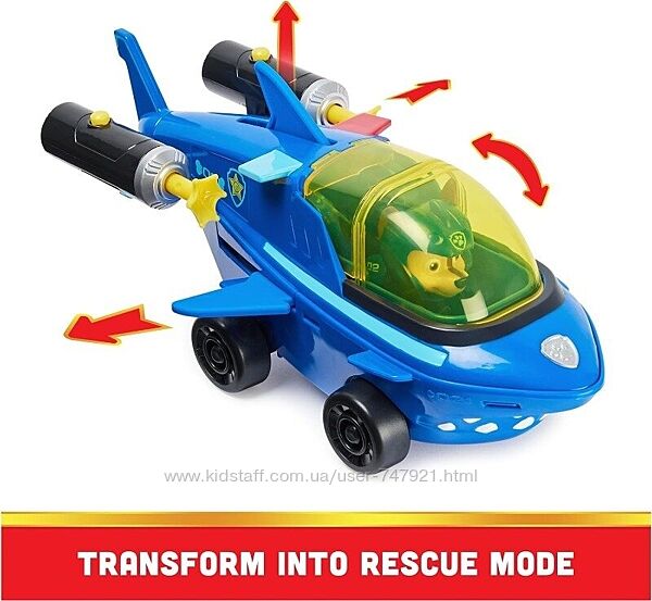 Щенячий патруль Акващенки Аква автомобиль трансформер Чейза Paw Patrol Aqua Pups Chase Transforming Shark Vehicle от Spin Master.Объединитесь с Чейзом и примите участие в увлекательных спасательных операциях на его машине Aqua Pups — Shark Rescue Vehicle. Одетый в синий гидрокостюм и шлем Aqua Pups, Чейз готов к экстренным спасательным операциям в море. Автомобиль-акула Чейза демонстрирует захватывающую трансформацию. Просто поместите Чейза в автомобиль и закройте кабину, чтобы задействовать крылья и спинной плавник, переводя его машину в режим спасения. Если возникнет преграда, загрузите снаряды (два в комплекте) в обе пусковые установки и нажмите кнопки для запуска. Создавайте захватывающие приключения с помощью спасательной машины Чейза. С игрушками «Щенячий патруль» дети могут развивать свое воображение и развивать моторику в ролевых играх, воплощая в жизнь свои любимые сцены из мультсериала.