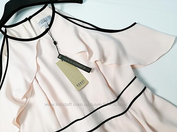 Брендовое коктейльное платье с открытыми плечами и воланами Coast Качественный дорогой бренд,Цена на офиц,сайте на данную модель 169 евро(6800 тыс) Новое,размер Л,подойдет и на М Невероятно женственное коктейльное платье от Coast имеет модный образ с открытыми плечами благодаря вырезам на отделке воланами. Оно выполнено из мелкоструктурированного материала и имеет контрастную коктельку на талии. Вырез «капля» на пуговицах на спине добавляет элегантный акцент. --------- пог 50 пот 41 поб по подкладке 54 длина 116