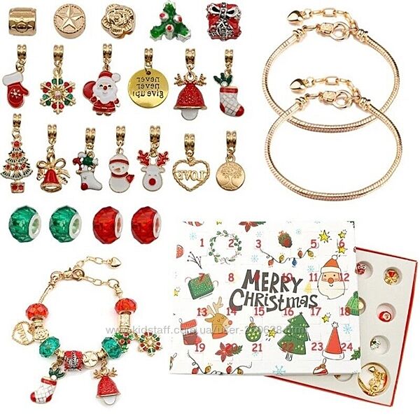 Набір з 24 різдвяних прикрас - 2 браслети і 22 міні-перли, у тому числі ялинки, дзвіночки, сніжинки і т.д.