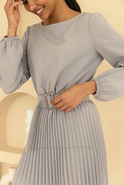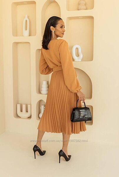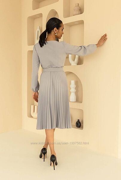 Подробное описание: Вечірня сукня плісе класична міді з довгим рукавом з поясом плаття