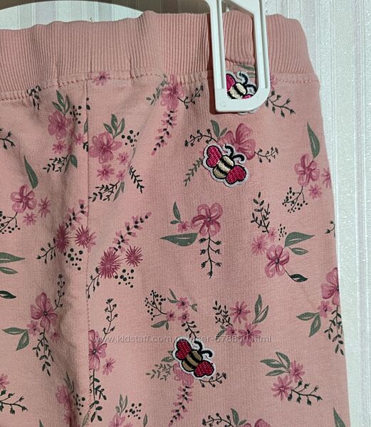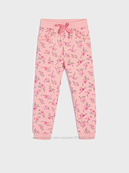 Коралові тонкі спортивні штани у квіточку від Sinsay у розмірі 128 для дівчинки.Стан нормальний, без начосу. Є нюанс - бджілки на попі (були дірочки).
