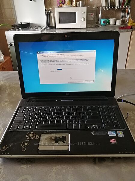 Ноутбук рабочий, включается не с первого раза, иногда не включается экран или включается и показывает такое сообщение на фото 2, работает только от сети, аккумулятора нет.Технические характеристики HP Pavilion dv6-1205er (VJ860EA)