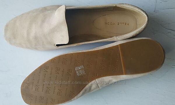 Бежевые замшевые балетки лоферы на плоской подошве Pelle Moda размер 11. Лоферы подойдут на узкую ногу 41 размера. Длина по стельке 27 см. Состав: кожаный верх - замша текстильная подкладка резиновая подошва