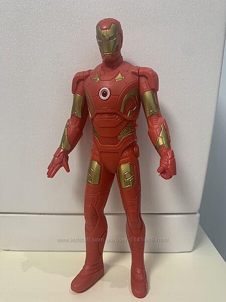 Фигурка Железного человека 15см, крутится голова, двигаются ноги, рукиПри нажатии на кнопочку светится на груди красный свет.