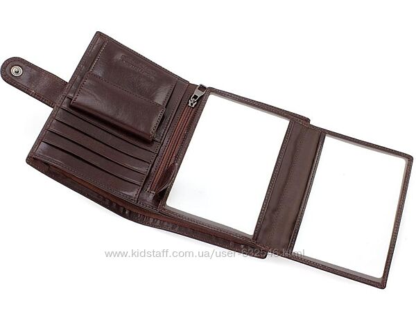 Матеріал: натуральна шкіра; Колір коричневий та чорний Розміри (ШхВхТ, см): 11х14х3,5. Країна виробник: Польща Портмоне йде у брендовій упаковці