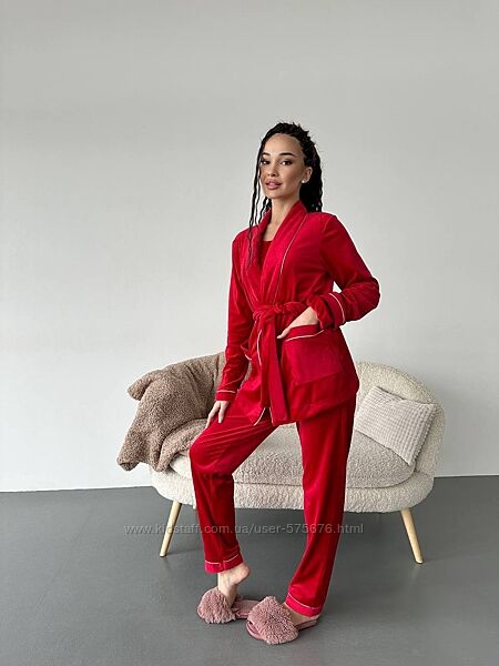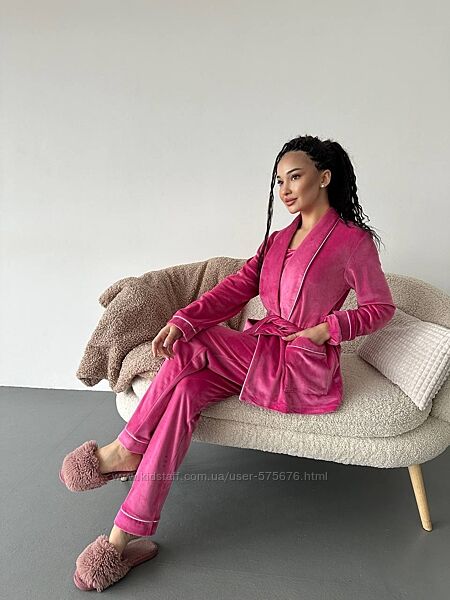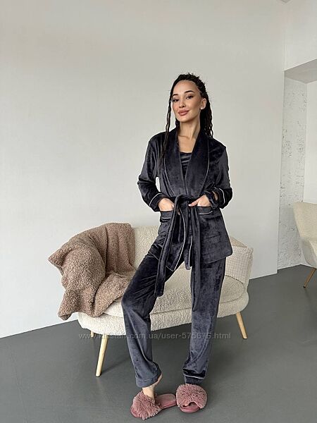 Подробное описание: Велюрова піжама 4-ка Розміри S-M L-XL