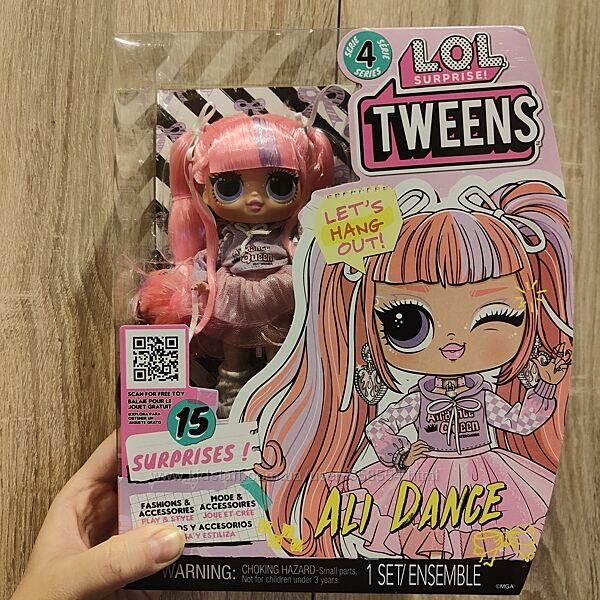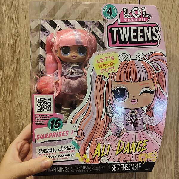 Оригинал Пересылаю УП НП В наличии 5шт Встречайте стильных леди-куколок LOL Surprise серии «Tweens»! Это серединка между классическими крохами LOL и красотками OMG. Кукла LOL Surprise Tweens S4 Али Денс — это королева танцпола в ярком модном образе и 15 сюрпризов! В наборе: кукла высотой 15 см; 15 сюрпризов (одежда, обувь и стильные аксессуары); подставка для куклы. Рекомендовано для детей от 3-х лет.