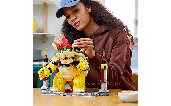 Зберіть, грайте та демонструйте короля всіх куп! Керуйте рухами голови та шиї Могутнього Боузера та активуйте установку, що стріляє вогняними кулями. Демонструйте модель на платформі для битв - на ній є дві вежі, які він може перекинути, і прихований блок POW. Ви можете об´єднати набір «Могутній Боузер» зі стартовим набором LEGO Super Mario (продається окремо) для битв з LEGO Маріо, LEGO Луїджі або LEGO Піч.Вік: 18+