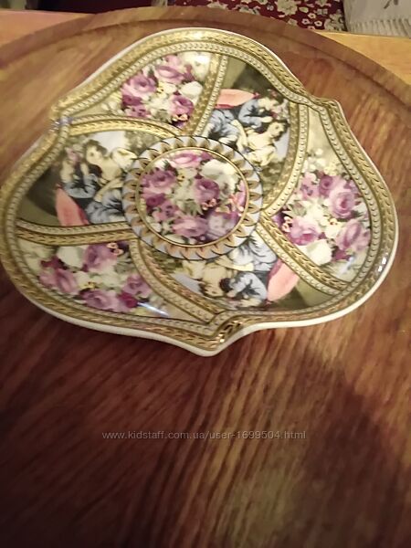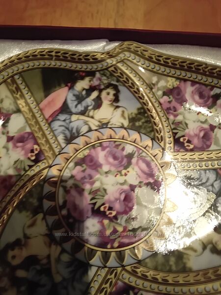 Подарочная красивая тарелка с изображением людей и цветов