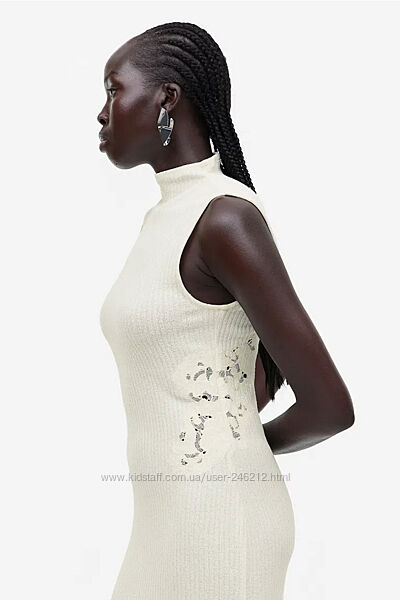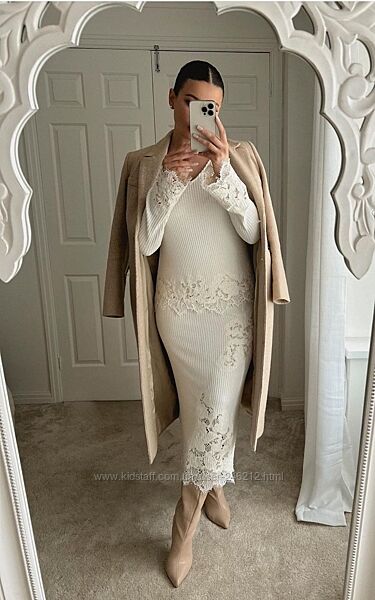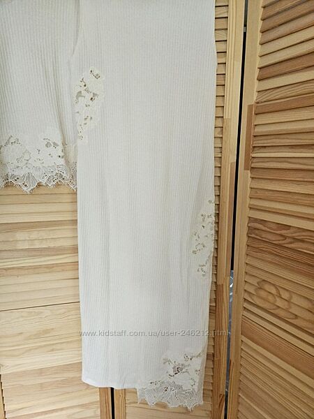 Витончена в´язана сукня H&M в рубчик.Облягаючий крій з шикарною квітковою вишивкою та мереживними вставками.