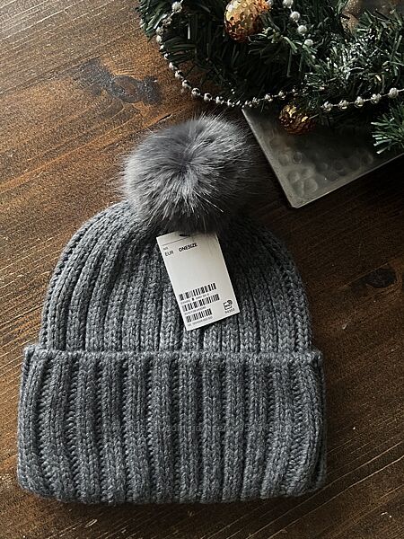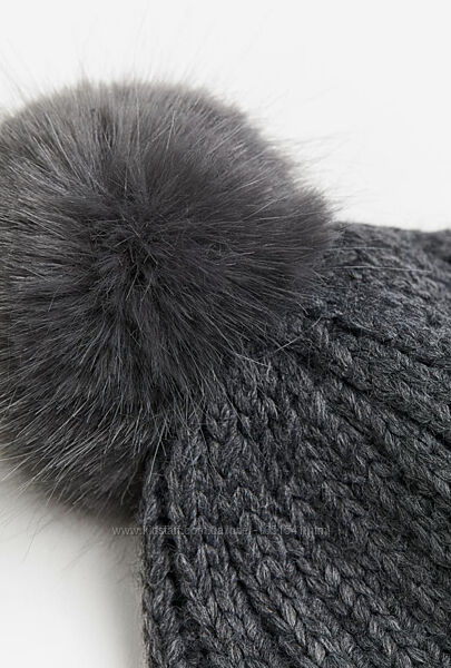 М´ягка зимова шапка зверху прикрашена помном зі штучного хутра від H&M, грубої в´язки на флісіКОЛІР сірий графіт
