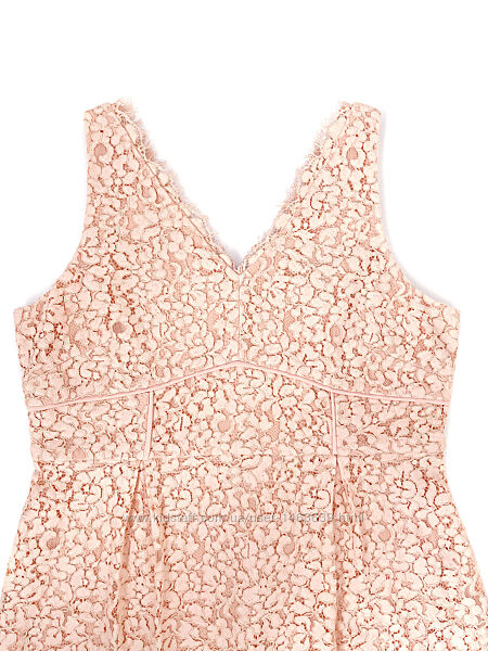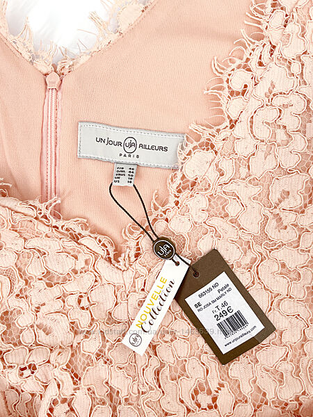 Великолепное кружевное платье без рукавов с V-образным вырезом спереди и сзади от французского премиум бренда Un Jour Ailleurs.Нежный светло-розовый цвет.