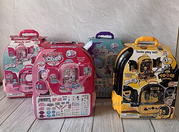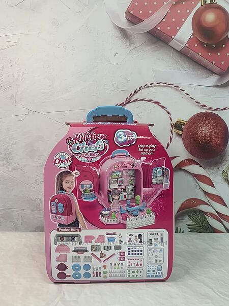 Двостороння валізка з кухонним приладдям . Такий набір надовго захопить дитину. З однієї сторони- набір кухонного приладдя , з допомогою яких малюк отримає необхідні знання куховаріння, навчиться поводити себе відповідно на кухні у вигляду гри. З іншої сторони міні-кухня , в якій іграшковий повар готує обіт та приймає гостей. Можна грати в рольові ігри. Бо в ігровому наборі є:кастрюла, пательня, чашки, тарілки, веделки, вилки, лопатка, ніж, баночки з кетчупрм та гірчицею,фігура лікаря та побутова техніка з меблями для міні-кухні. Всі предмети виконані з високоякісного пластику. Набір зручно брати з собою, бо його можна носити в руках за ручку або на плечах за допомогою лямок. Юний повар може прийти в будь-яке місце дому. Цей набір створить основу для розвитку у дитини уяви, соціальних і практичних навичок. Граючи, дитина отримує нову інформацію про навколишній світ, вчиться діяти і спілкуватися. Розмір виробу: 35,4х50,6х30 смРозмір упаковки: 27х16х30 см
