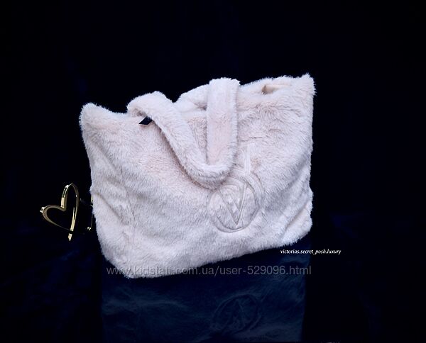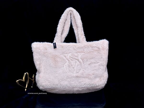 Біла велика хутряна сумка, тоут, шоппер Victorias Secret, Вікторія Сікрет