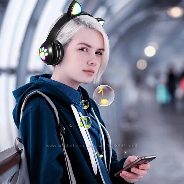 Беспроводные наушники ST77 LED со светящимися кошачьими ушками.Беспроводные наушники светящиеся с кошачьими ушками отличаются от большинства других моделей аудио гарнитуры маленькими кошачьими ушками. Данный дизайн пользуется особой популярностью среди молодого поколения благодаря тому, что есть подсветка ушек и лапок. Благодаря широкому частотному диапазону, наушники с ушками обеспечивают высокое качество проигрываемого звука любых тональностей, в независимости от музыкального жанра.