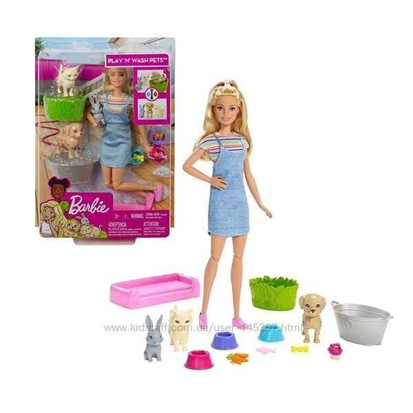Барби купай питомцев и играй с животными Barbie Play N Wash Pets